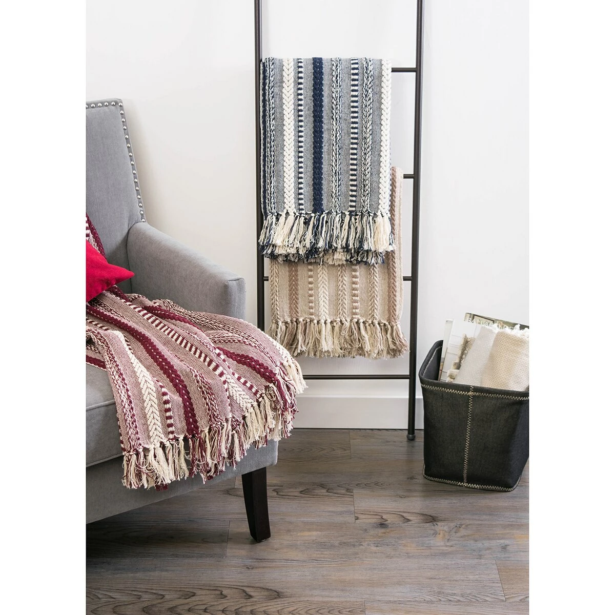 The DII® braided stripe throw measures 50″ x 60″ and is constructed from 100% cotton. Old-fashioned look with a modern twist and 2.5″ decorative fringe for the perfect finish that won’t unravel in the wash. This throw has a very chic and trendy look. Perfect to throw over a couch or chair to add a splash of color and provide warmth on a cold night. Use DII® throw blankets to stay warm, as a decor piece over a chair or couch, to wrap housewarming gifts, as a picnic blanket, or when camping.This item requires oversize delivery. Please refer to the Order Summary in the Shipping step at checkout for delivery charge.