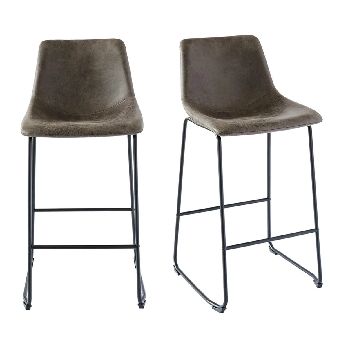 This Elements Wes metal bar stool set is the missing piece to add to your kitchen or your own personal bar, these will go great with either space! The set includes two chairs that are upholstered in fashionable faux leather fabric. The detailed stitching is seen throughout the cushions, giving the chairs extra flair. The metal frame creates the perfect rustic and industrial design mix, making it easy to pair with your home. The seat and back cushions are filled with foam, making the chairs super comfortable to relax and catch up in.This item requires oversize delivery. Please refer to the Order Summary in the Shipping step at checkout for delivery charge.