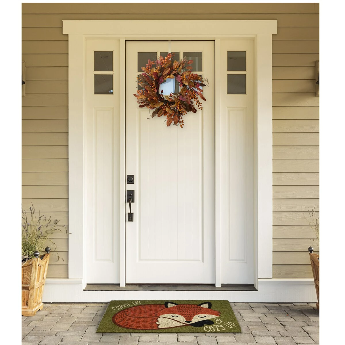 Add a little spirit to your home with this DII® Cozy Fox Doormat. This beautiful doormat is constructed from Coir with a phthalate-free PVC back. The strong naturally occurring fiber creates stiff bristles perfect for scraping dirt and mud from shoes and boots. With a non-slip PVC backing that helps prevent slipping and helps keep your mat in place.