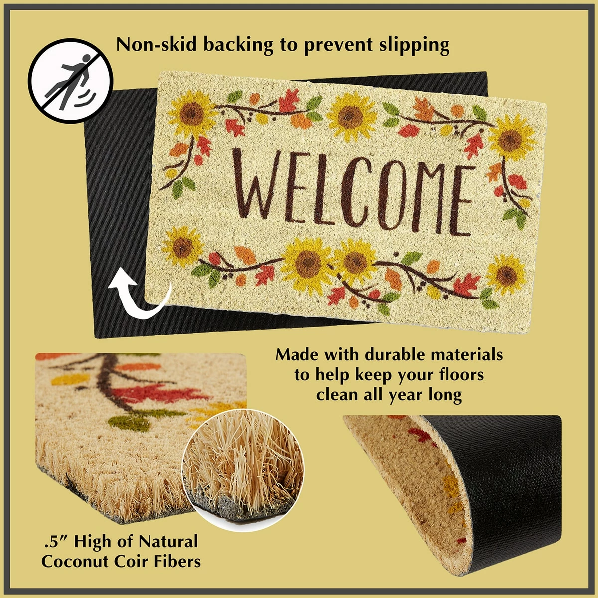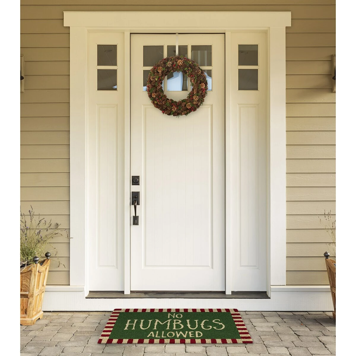 Add a little Christmas spirit to your home with this DII® No Humbugs Doormat. This beautiful Christmas doormat is constructed from Coir with a phthalate-free PVC back. The strong naturally occurring fiber creates stiff bristles perfect for scraping dirt and mud from shoes and boots. With a non-slip PVC backing that helps prevent slipping and helps keep your mat in place.