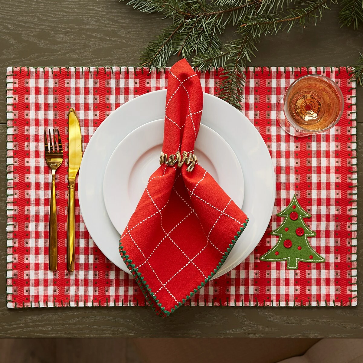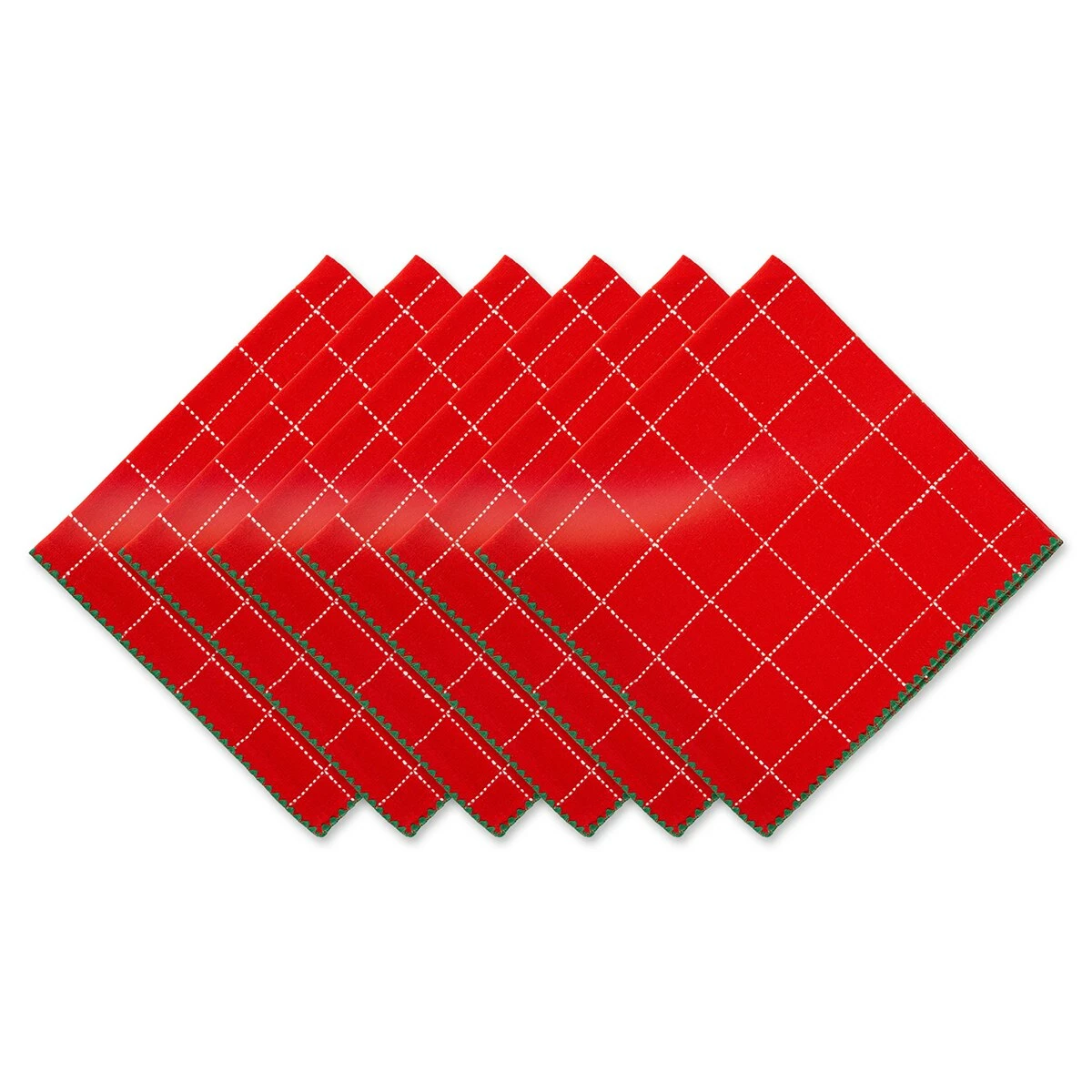 The DII® Red Joyful Dobby Napkins feature flatweave with dobby and finished with green shell stitching. Constructed with 1/2″ hem with mitered corners. Perfect for your holiday table.