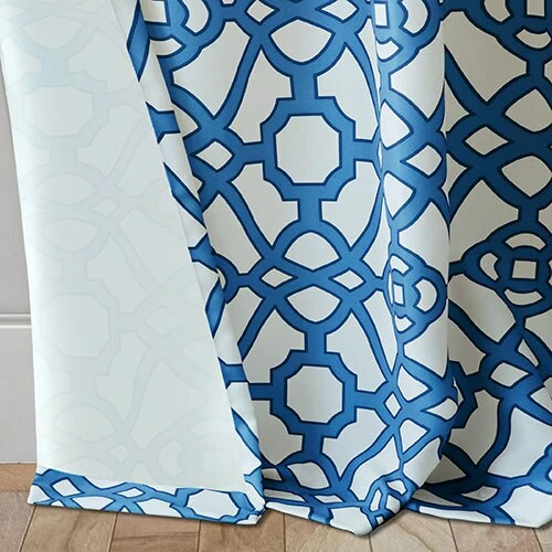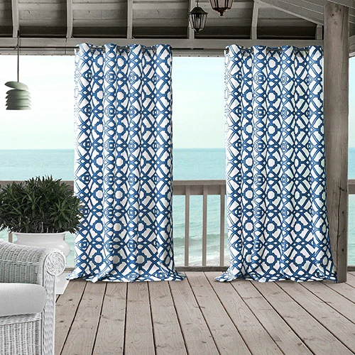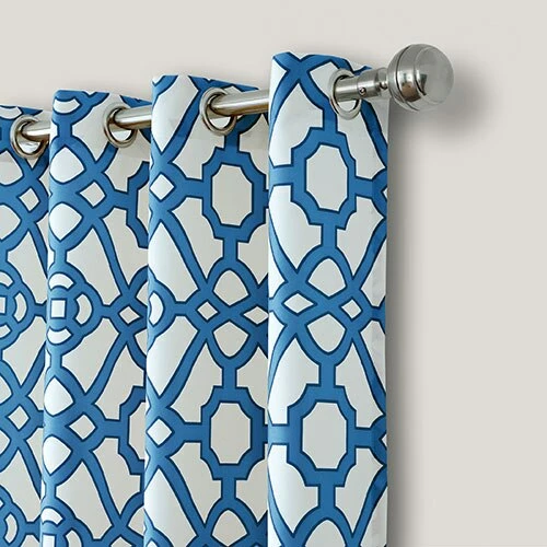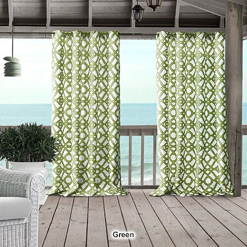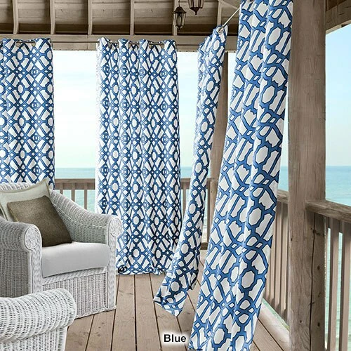 The Elrene Marin indoor/outdoor grommet curtain panel features a contemporary ironwork design that offers a pop of color to your patio or gazebo. The curtains promote a stain and water repellant finish with fade resistance qualities, UPF 50+ protection and stainless steel, rust-proof grommets. Machine wash, cold. Tumble dry. 100% Polyester. Includes one panel per package.