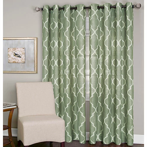 This Medalia grommet curtain panel from Elrene features a medallion-inspired, contemporary geometric pattern. This curtain panel will add a unique and personal touch to any living space. 80% Polyester/20% Linen. Machine wash cold in gentle cycle with like colors. Use non-chlorine bleach when needed. Tumble dry low. Touch up with iron as needed. 1 panel per package.